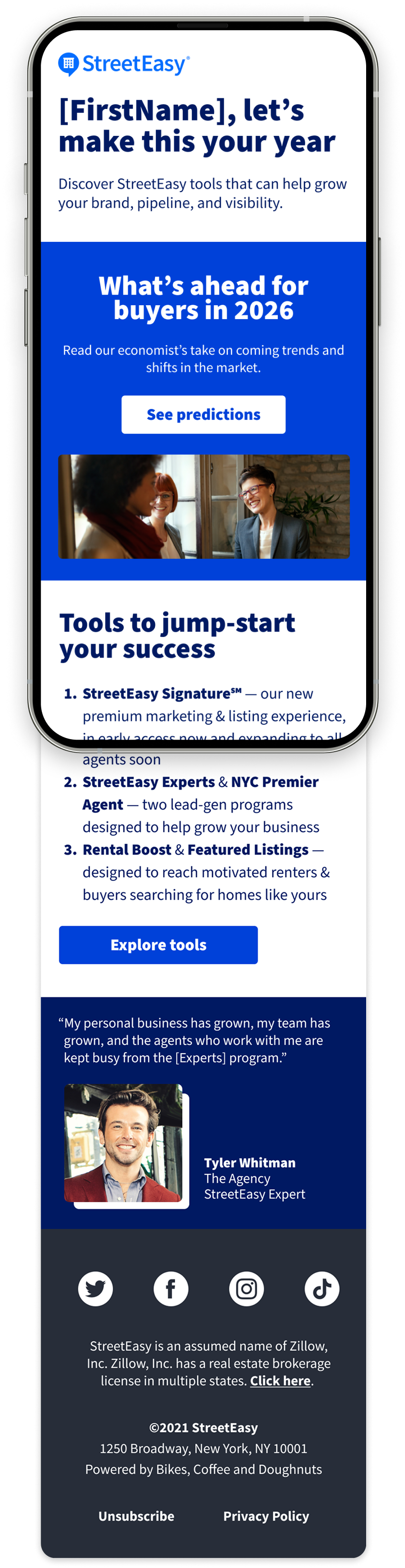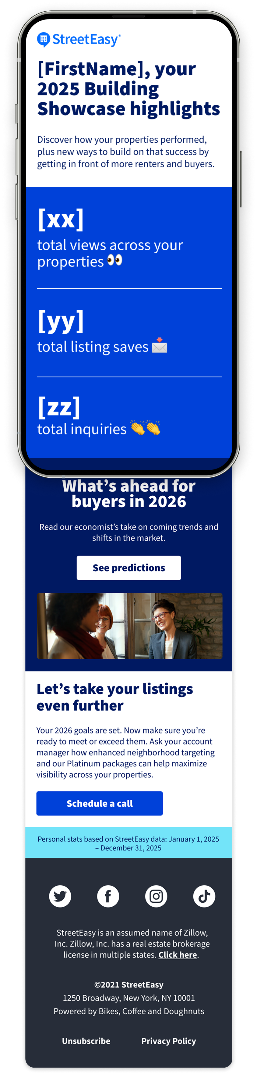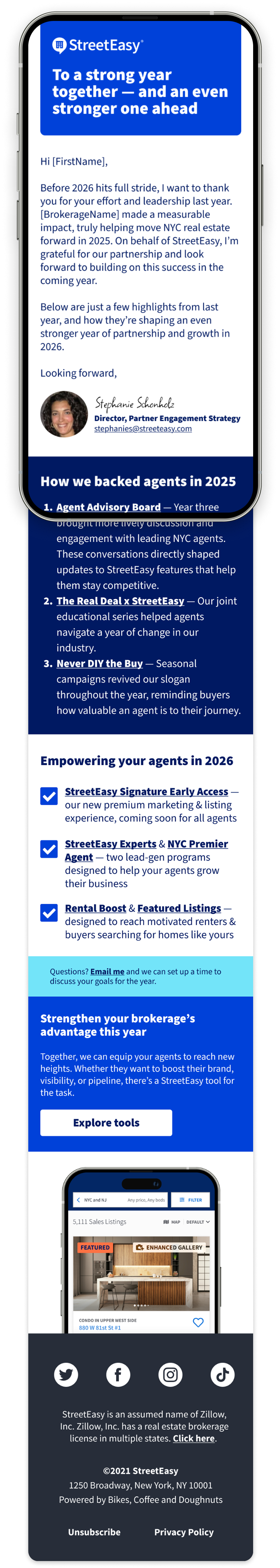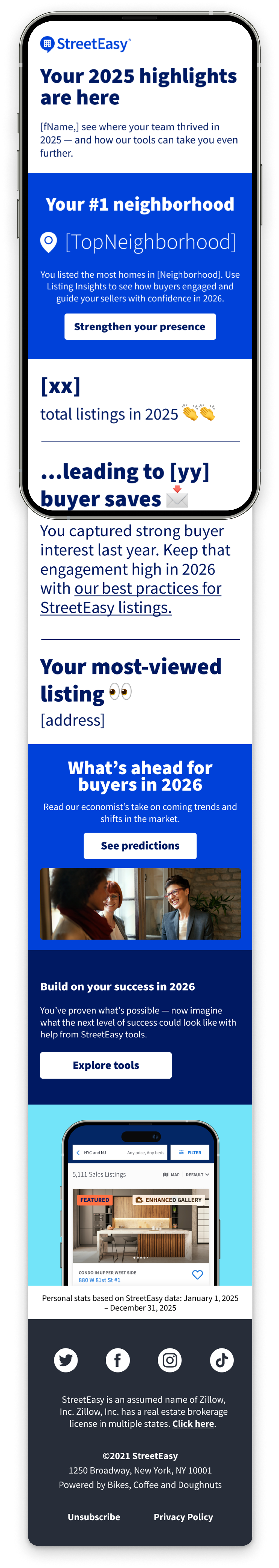Each year, StreetEasy delivers a segmented year-end campaign that uses personalized data to celebrate partner success. This flagship moment also serves to spotlight the latest tools and programs, reinforcing StreetEasy's value as a trusted, agent-first partner.